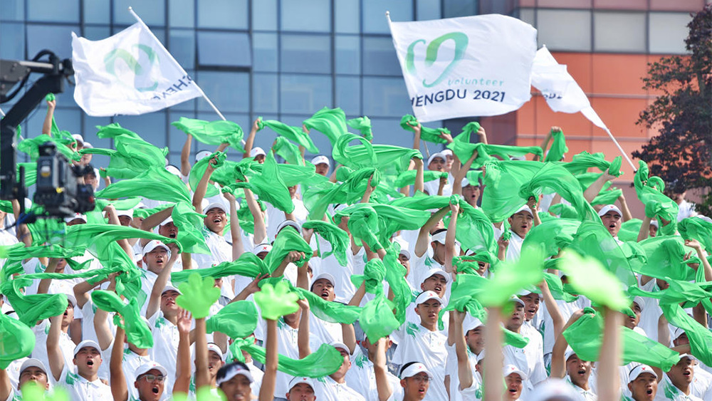 来自西华大学的学生韩晋琳,2021年通过学校统一招募、选拔报名参加成都大运会志愿服务。“自成为注册志愿者以来,一直参与与大运会相关的城市志愿服务工作,为大家宣传大运会。成为大运会志愿者,需要经过学校的统一培训,包括线上的通识培训以及线下的强化培训,还有开赛前的实战演练等。”