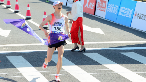 男、女全程组,李鹏程最终以1小时55分11秒的成绩收获男子全场冠军与30至34岁分龄组冠军。徐莹获得20至29岁年龄组的第一名。