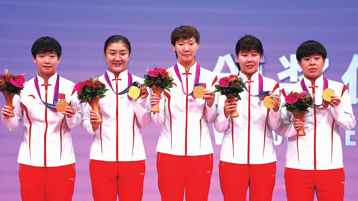 亚运会赛场上,国乒呈现出了良好的精神气质和风貌,每当有国乒球员参赛,没有比赛任务的运动员、教练员以及国乒功勋老教练们都会组成“国乒助威团”呐喊加油,成为了一道靓丽风景;比赛结束之后,国乒上下也会主动与外协会选手互动、交流,一张张合影、一个个签名、一件件礼物传递出了“中国乒乓、世界共享”的胸怀和气度。