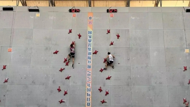 3月26日在海南白沙举行的国家攀岩集训队参加2025年国际比赛(速度项目)选拔赛(海南·白沙)中,赵一程技惊四座,总共上场4次,除第一次攀爬略显卡顿外,在后续出场中一次好过一次,第二次攀爬的成绩为4秒767,接近美国选手塞缪尔·沃森保持的4秒74世界纪录。第三次出场,惊喜来了,赵一程的成绩为4秒689,这是一个超世界纪录的好成绩!但惊喜还没结束,赵一程在最后一次攀爬中将成绩再度刷新,4秒656的成绩引得全场沸腾!