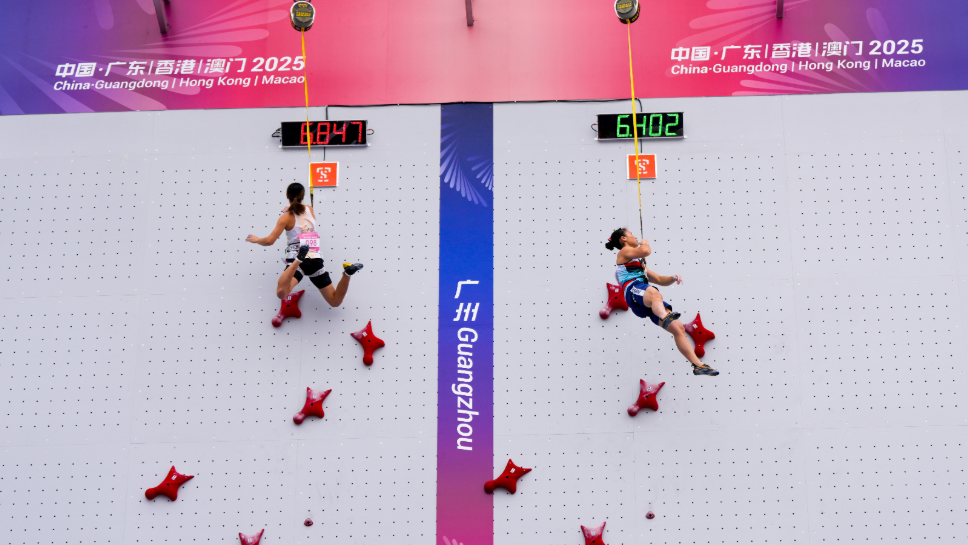 11月13日晚间的广州大学城体育中心极限运动中心,第十五届全国运动会攀岩项目男子难度赛决赛正在激烈展开。当预赛排名第一的潘愚非出场前,7名选手均未能登顶。但就在潘愚非开始攀爬后不久,天空飘起了点点雨滴,阴冷的风也将潘愚非的衣服吹起……这不禁令观众为他捏了一把汗。